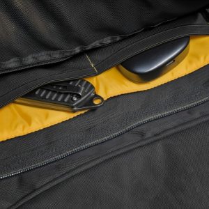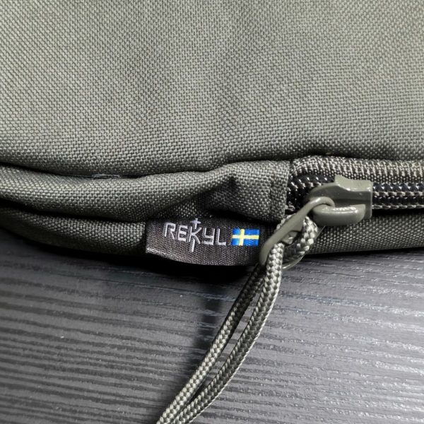 Computer Sleeve är gjord i polyamid som klarar stötar och slag och bär Rekyls symbol utan att skryta för högt om det. Insidan är varmgul — inte för att det ska se snyggt ut, utan för att du ska hitta det du letar efter i skymningsläge utan att behöva lysa med telefonen.